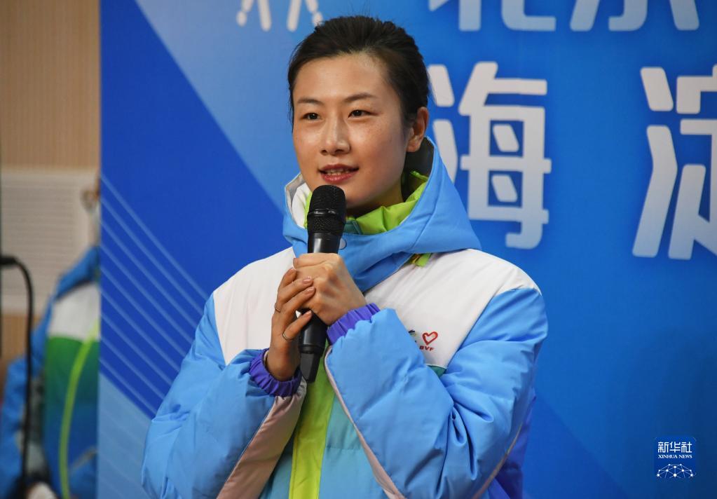 1月25日,北京冬奥城市志愿者形象大使、乒乓球奥运冠军丁宁在活动中讲话。