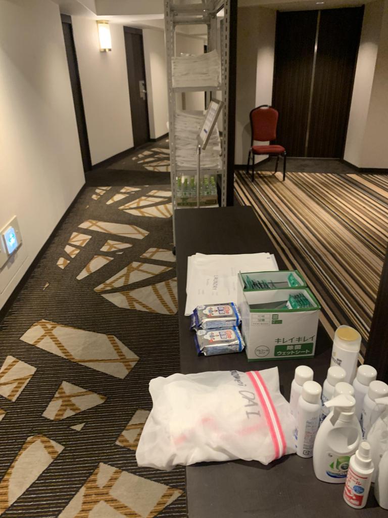 在日本期间,中国队入住封闭楼层,使用专用进出通道,酒店以“零接触”为原则提供必要服务。入住期间,酒店服务人员不进行房间清洁。在完成消杀和准备工作,酒店人员离场后,队伍才能前往专用餐厅用餐。固定时段的健身房使用也是如此规定。每个楼层都设置物资补给台,生活用品更新、废品回收以及洗衣袋取放都通过补给台实现。