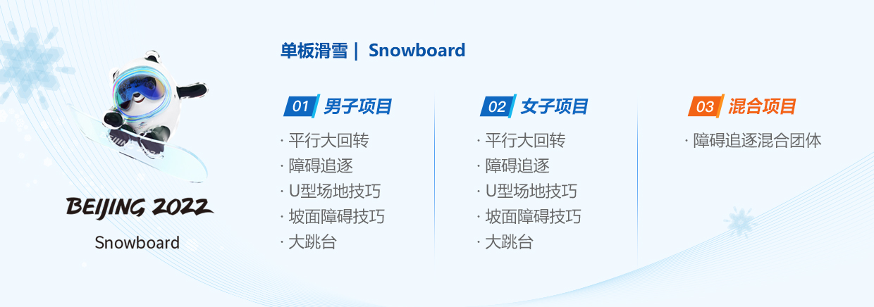 北京2022年冬季奥林匹克运动会单板滑雪共设11个小项: