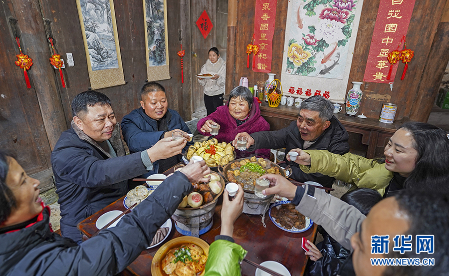 1月25日,在安徽省宁国市胡乐镇胡乐村村民家中,四世同堂,儿孙绕膝,团团圆圆。