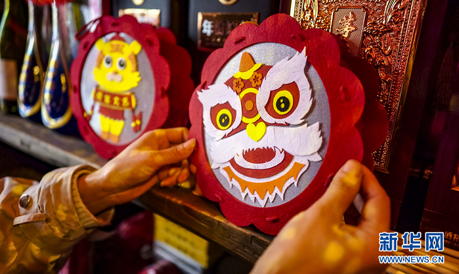 1月25日,安徽省宁国市胡乐镇胡乐村的商铺里摆满了年味十足的老虎、狮子等花灯饰品。