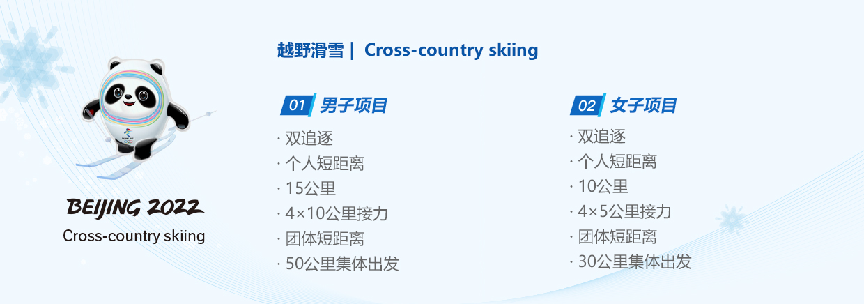 北京2022年冬季奥林匹克运动会越野滑雪项目共设12个小项: