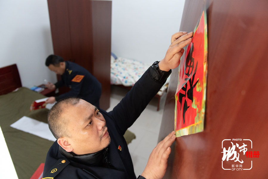 农历小年前,武陵山深处寒风凛冽,程时勇和同事们一起在站房贴起了“福”字和春联,让春运里的小站也洋溢着新春气息。新华网 耿骏宇 摄