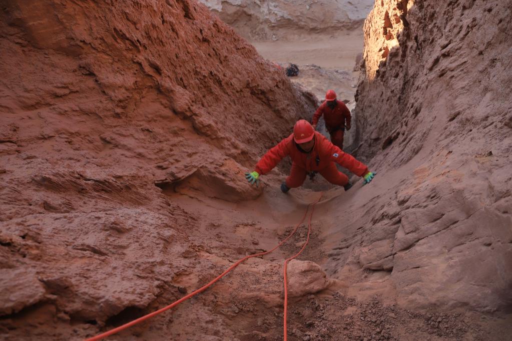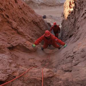 东方物探塔里木物探处247队在麻扎塔格山爬山作业。王健 摄