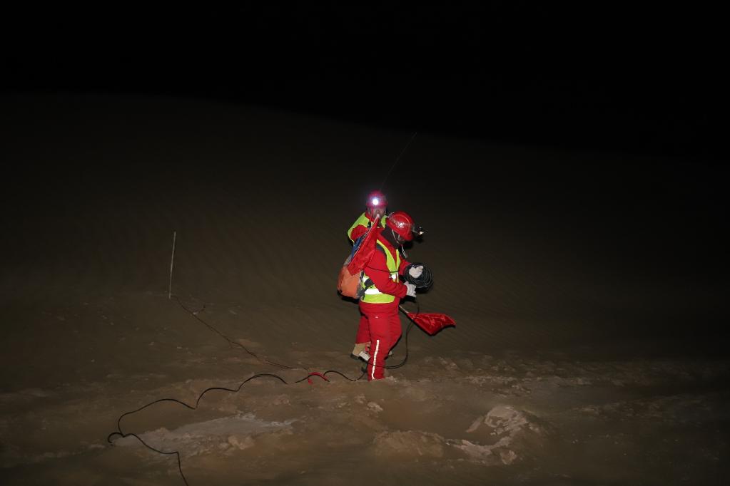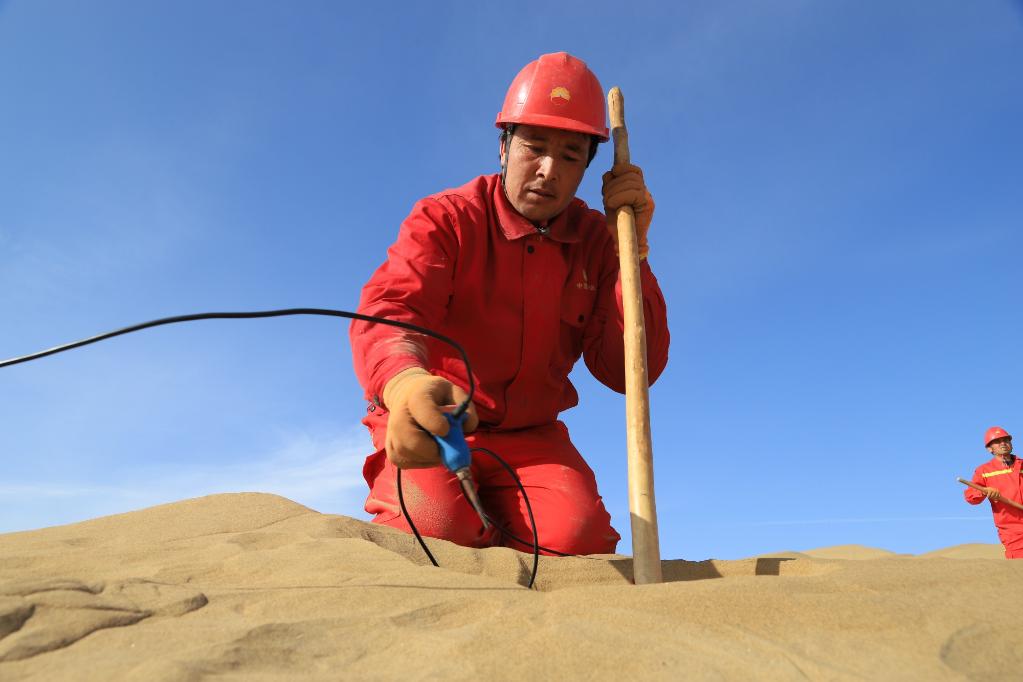 东方物探塔里木物探处247队工人在沙漠中采集作业。王健 摄