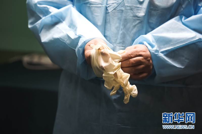 雷妈妈正在戴手套,准备给大猫“摩卡”检查身体。新华网发(张羲轮 摄)新华网 李幸子 文