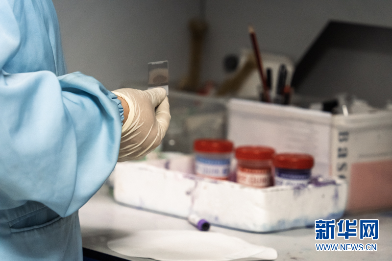 雷妈妈把“蛋清”的血液样本放到玻片上。新华网发(张羲轮 摄)新华网 李幸子 文