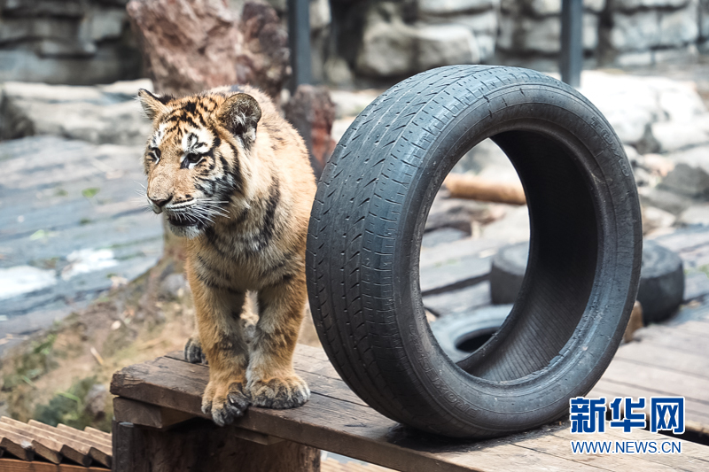玩偶好可爱啊,“美美”也很可爱,我要快快长大,和虎哥哥们玩耍。新华网发(张羲轮 摄)新华网 李幸子 文