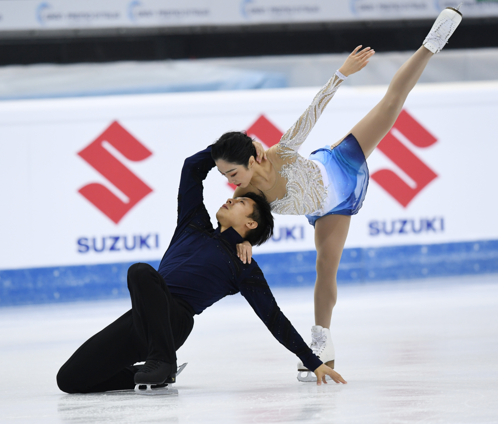 2021年11月6日,在意大利都灵举行的2021-2022赛季花样滑冰大奖赛意大利站双人滑比赛中,中国选手隋文静/韩聪夺得冠军。新华社记者金马梦妮摄