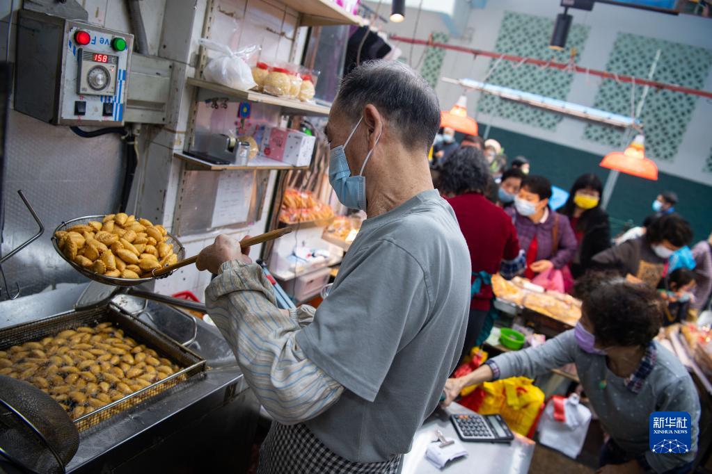 隔几条街道,72岁的吴福利正忙着挥动大勺,在油锅里翻动着炸油角。“今年吃油角,来年露头角”——形似荷包、金黄酥脆的油角,取其谐音“有角”,寓意来年会出人头地,也是澳门人过年必备的心头好。