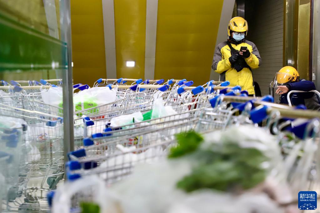 1月27日,中俄边城黑龙江省绥芬河市新增新冠肺炎本土确诊病例9例、无症状感染者6例。连日来,绥芬河市坚持疫情防控、保障供应两不误,全市商超、农贸市场、食杂店、餐饮等场所暂时停止营业,采用无接触式配送生活物资。超市工作人员和外卖小哥加班加点,确保市民线上采购的订单能按时送到。
