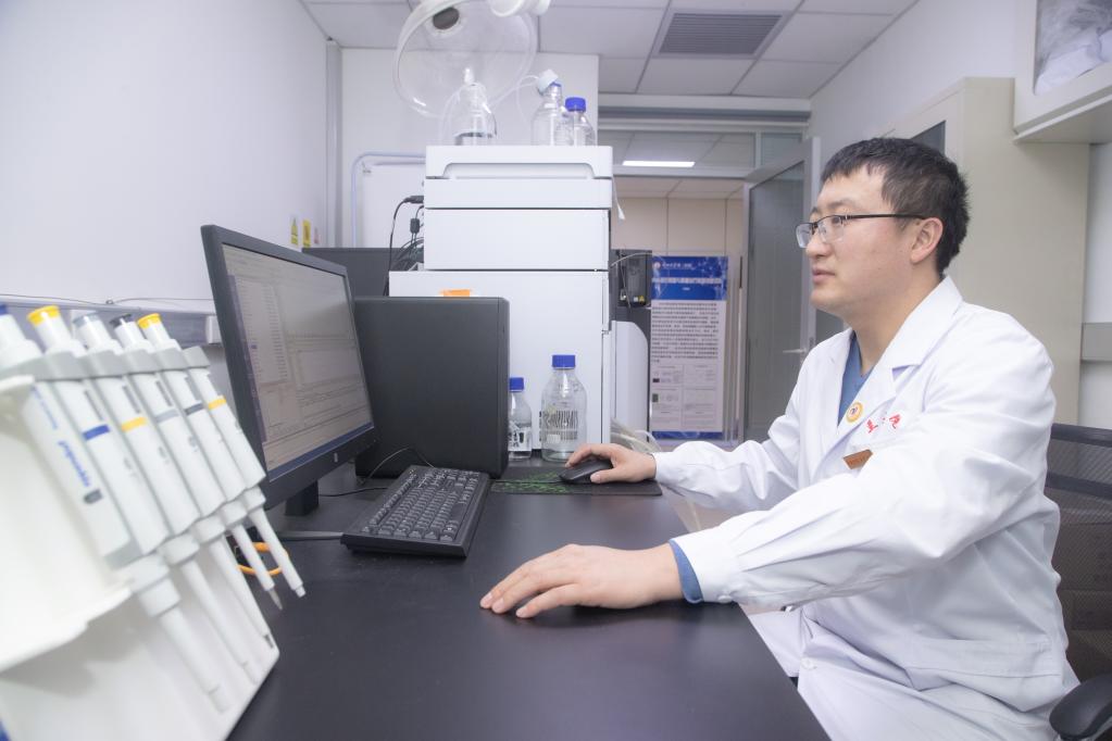 孙辉利用质谱仪对样本中的蛋白种类进行分析。新华社记者梁军摄