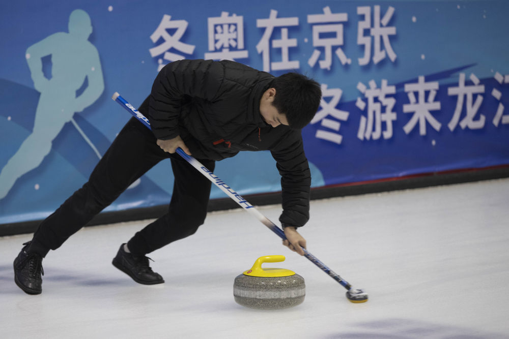 与专业运动员在哈尔滨市奥禹冰壶运动中心