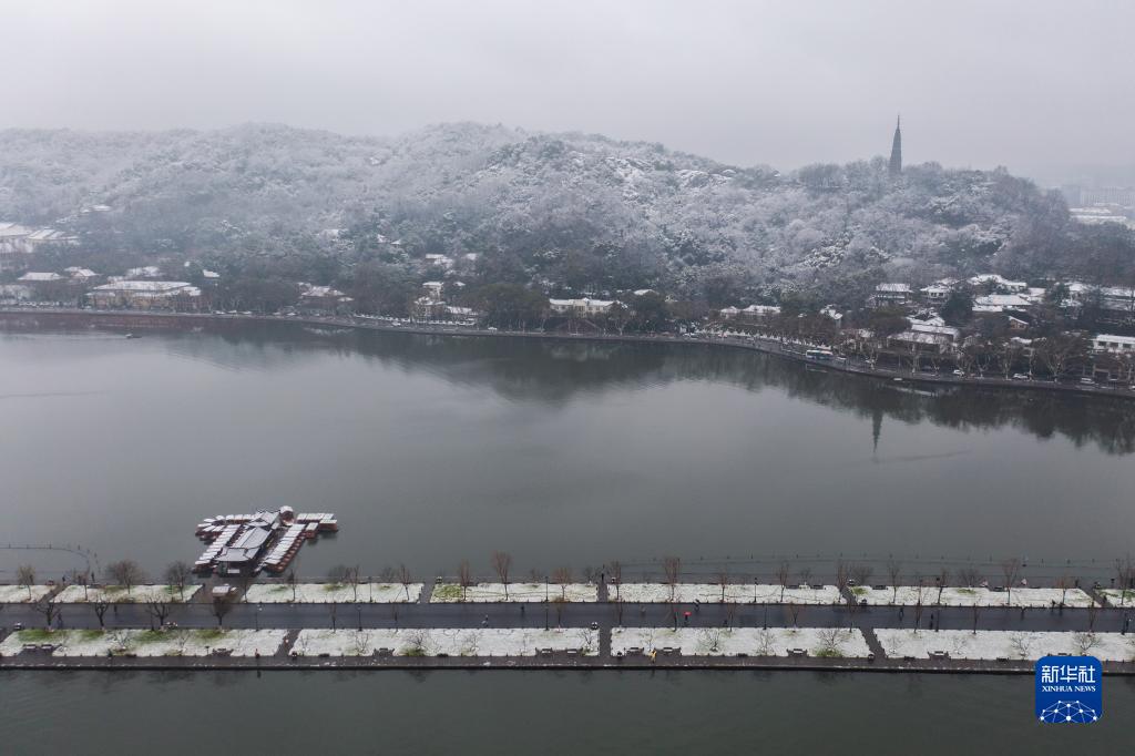 当日,冬日的杭州西湖被白雪覆盖,构成一幅银装素裹的“雪西湖”美景。