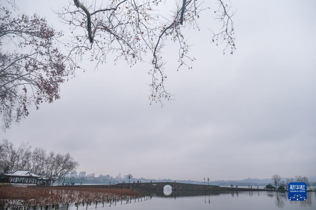 当日,冬日的杭州西湖被白雪覆盖,构成一幅银装素裹的“雪西湖”美景。