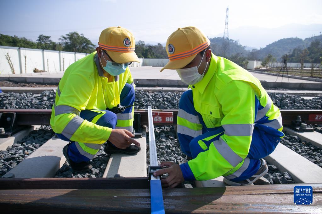 1月23日,在老挝北部山城琅勃拉邦的郊外,老挝员工学习铁路维保作业。新华社发(凯乔摄)