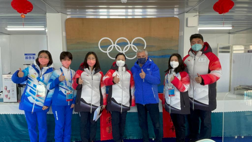 为了表示欢迎和祝福,在考察工作结束后,首钢滑雪大跳台场馆运行团队向小萨马兰奇送上了中国传统“福”字、春联和大跳台邮票。