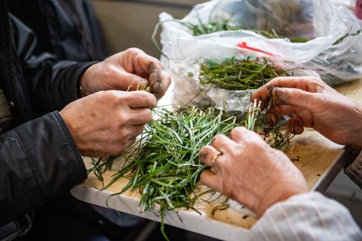 “2块钱一斤。”听到价格后,王玉莲的姐姐王川安马上掏出随身携带的一个手提电子秤,让老乡给她称2斤冬寒菜。不一会儿,老乡箩筐里的6斤冬寒菜,被王玉莲和她的朋友们买空。老乡也高兴地指了指自己的箩筐说:“我这里面还有50斤土豆,待会儿准备坐车去永川,在集市上卖掉。”