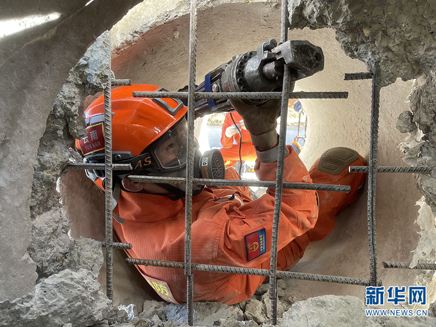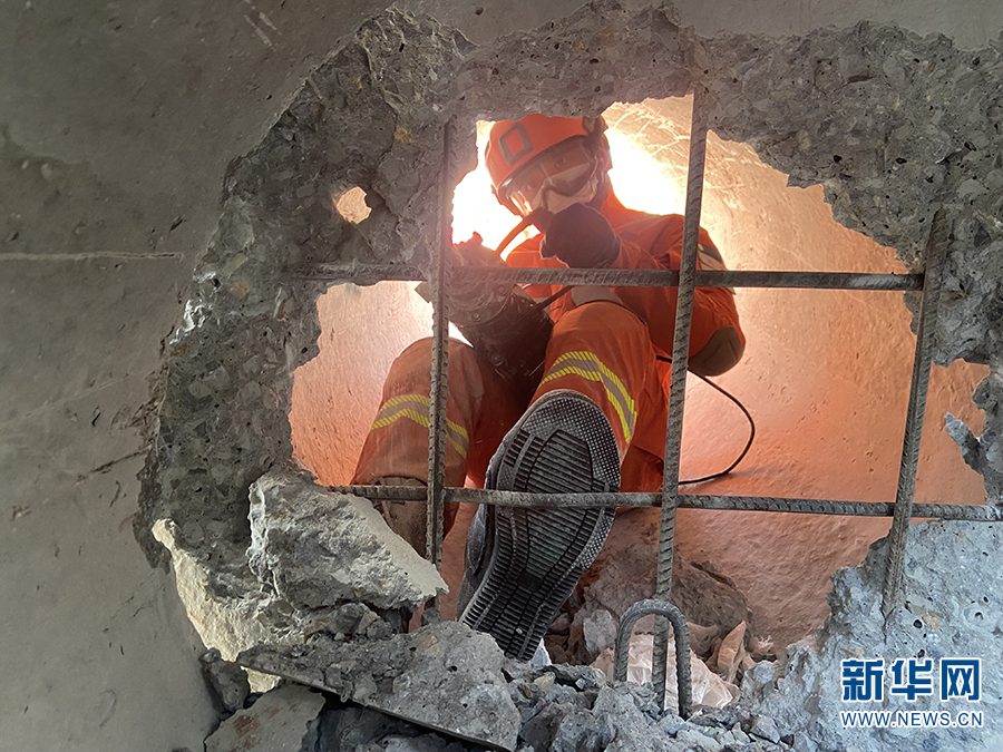 消防救援人员争分夺秒进行破拆救援(摄于1月20日)。新华网发(杨家辉 摄)