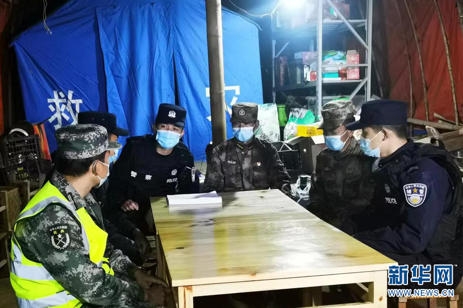 图为民辅警和护边员在讨论一天的执勤情况(摄于1月18日)。新华网发(德宏边境管理支队供图)