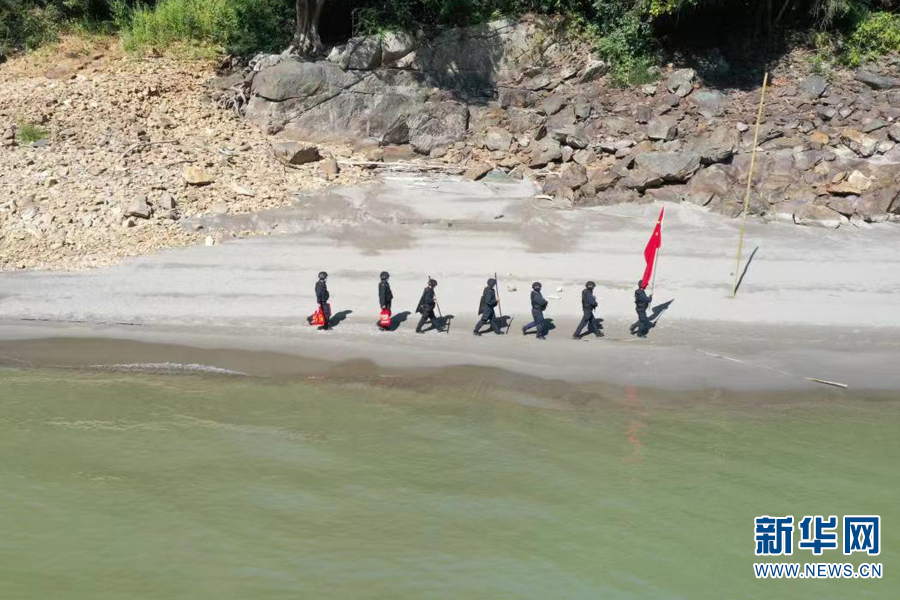 图为民辅警在中缅界河边巡逻(摄于1月18日)。新华网发(德宏边境管理支队供图)