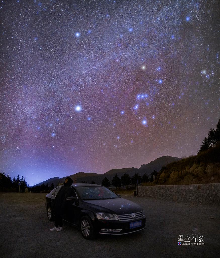 北京市天文爱好者赵衍衍2019年1月在北京东灵山拍摄的猎户座(参宿三星清晰可见)。(星缘山风队供图)