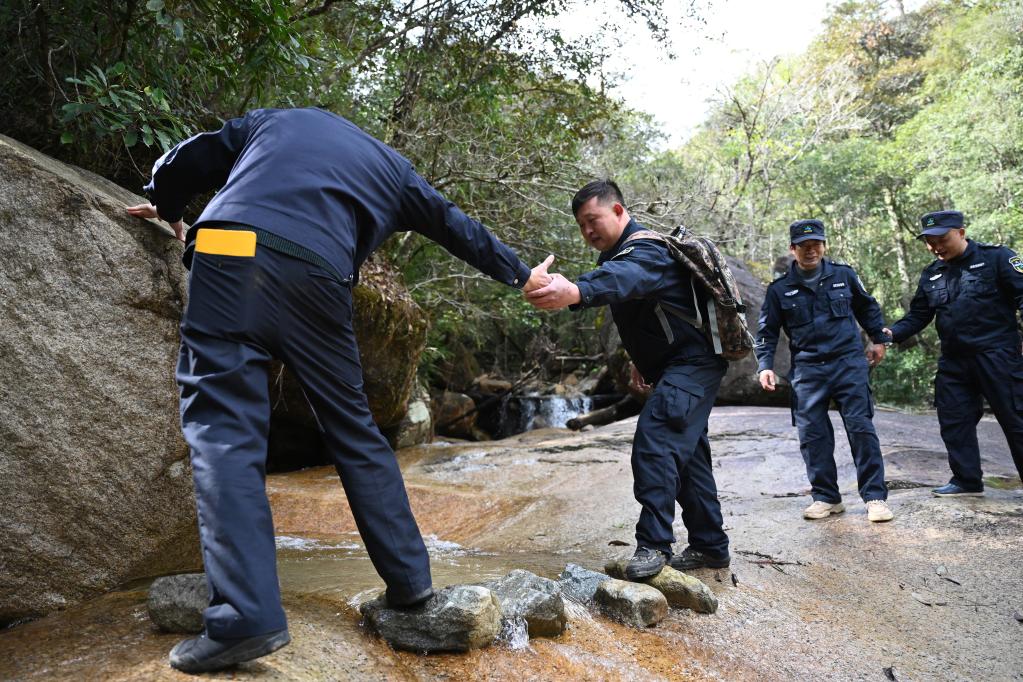 1月19日,武夷山国家公园护林员在巡山。新华社记者周义 摄