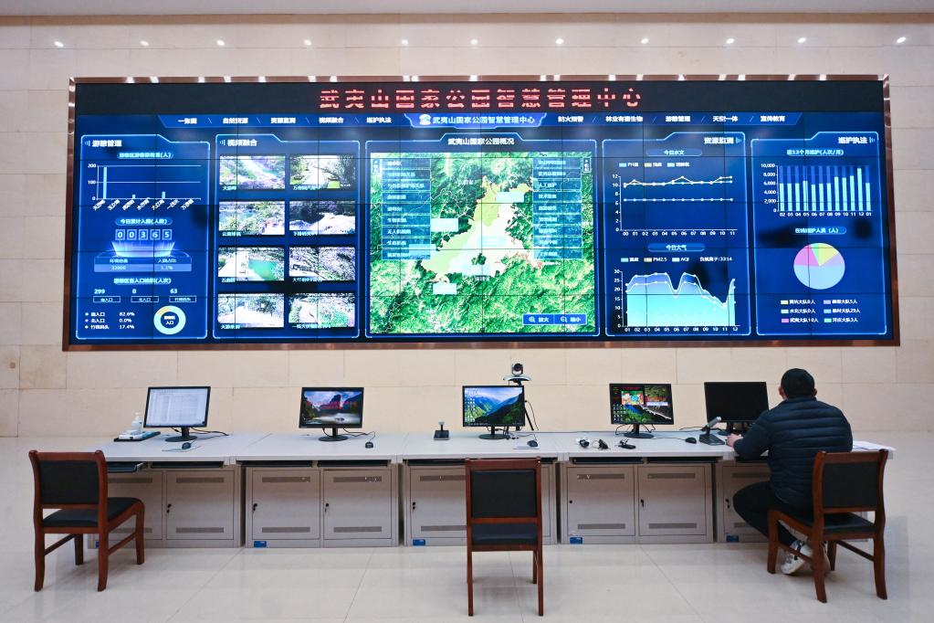 1月20日,工作人员在武夷山国家公园智慧管理中心查看数据。新华社记者周义 摄
