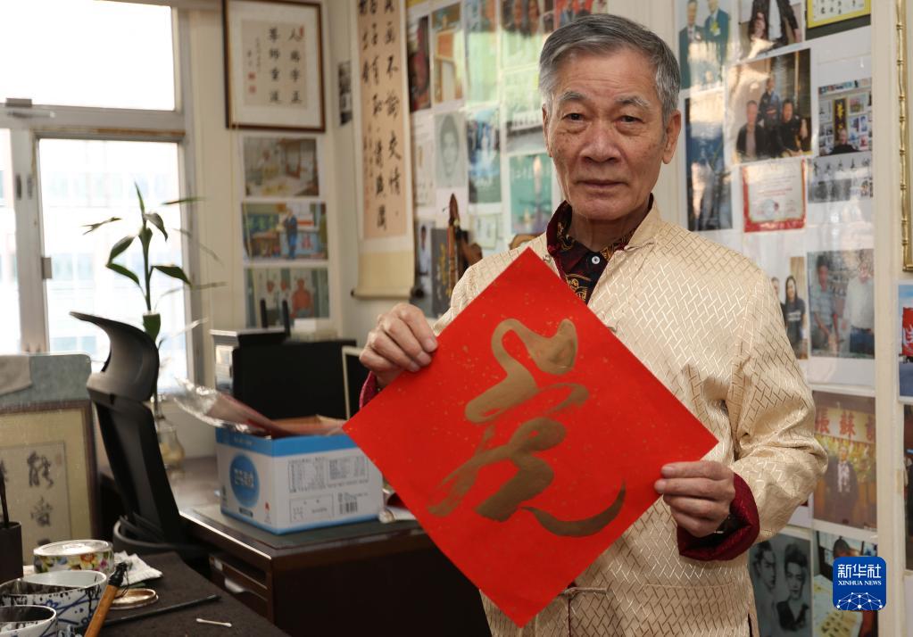 华哥展示自己写的“虎”字挥春(1月11日摄)。新华社记者 万后德 摄