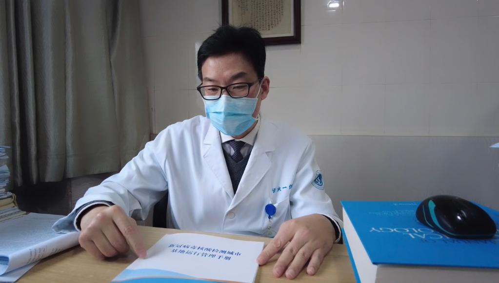 浙大一院检验科主任陈瑜在介绍由科室团队主笔的《新冠病毒核酸检测城市基地运行管理手册》。新华社记者崔力 摄