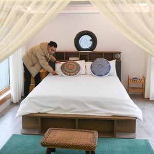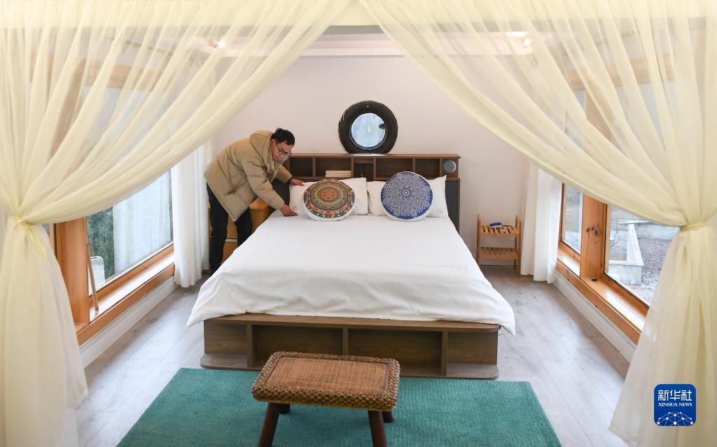 桥头镇桥头村一家民宿的工作人员在整理客房(1月27日摄)。新华社记者 王全超 摄