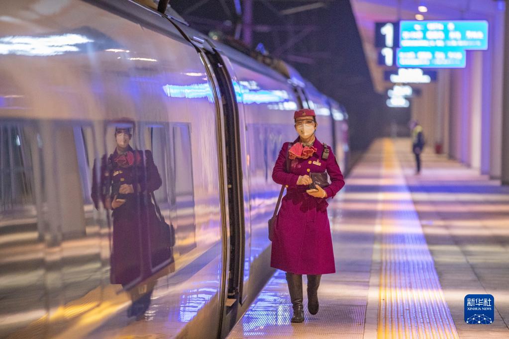“80后”的罗敏和丈夫王昀同是中国铁路成都局集团有限公司重庆客运段的列车长,今年两人迎来结婚后的第9个春运。因为工作原因,他们婚后连续多年的除夕无法一起吃年夜饭。今年春运期间,罗敏值乘重庆北往返成都东、万州北的动车组列车,王昀值乘重庆西往返昆山的普速列车。