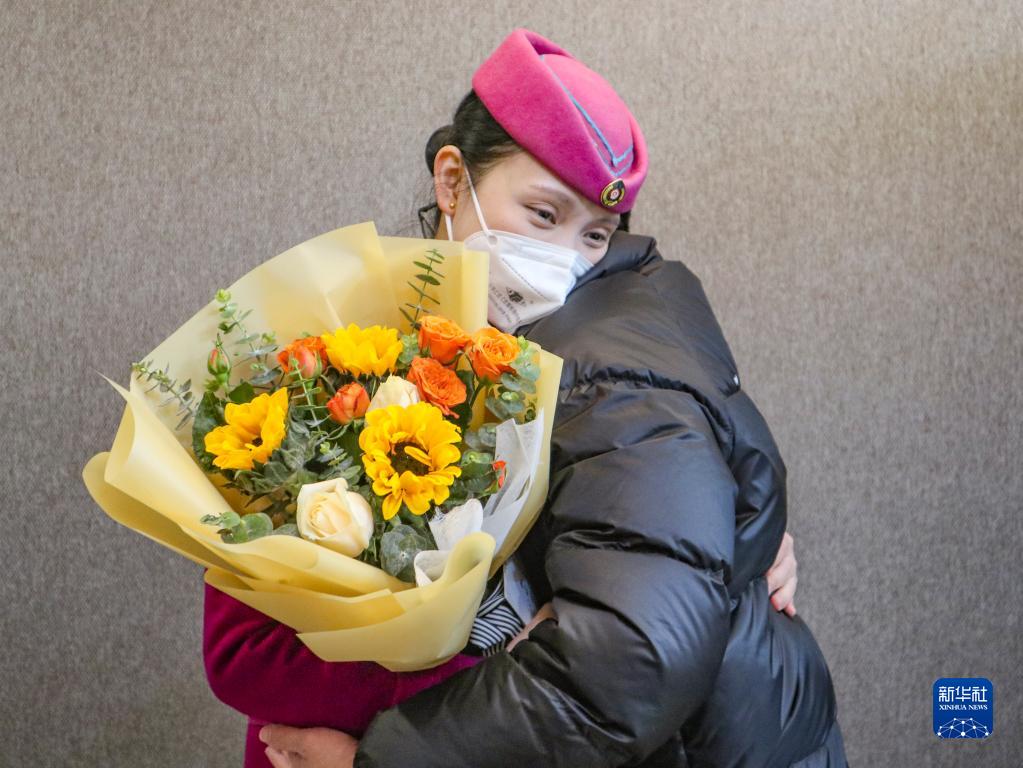 1月31日凌晨,罗敏回到家中,王昀为她送上鲜花。