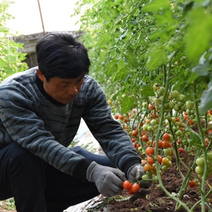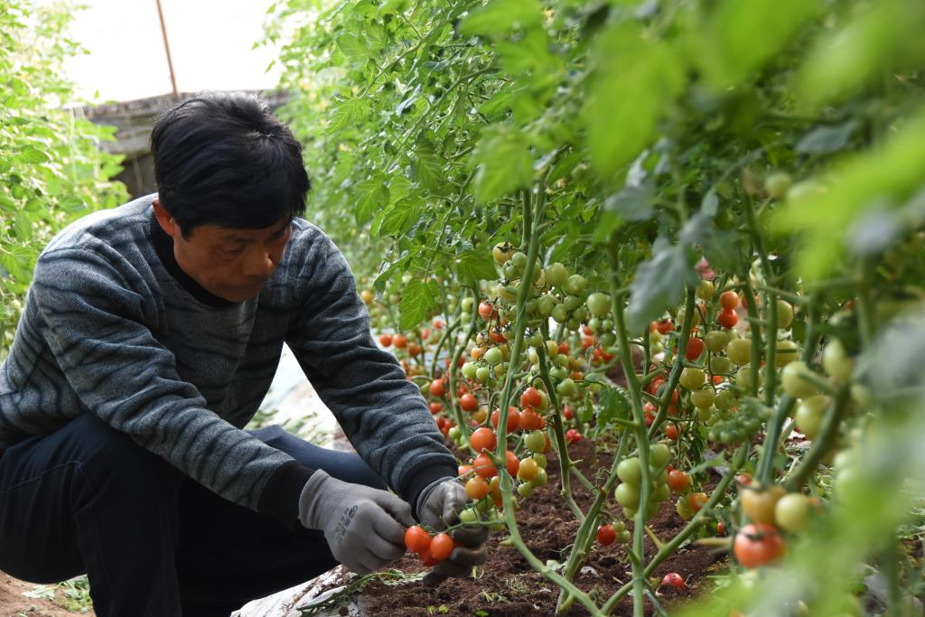 1月20日,在山东寿光蔬菜产业集团现代农业产业园,菜农胡金田正在察看小番茄长势。(新华社记者张志龙 摄)