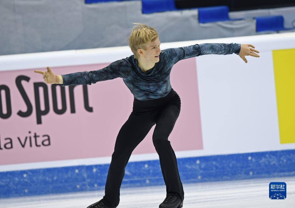 2021年11月6日,意大利选手格拉斯尔在2021-2022赛季花样滑冰大奖赛意大利站男子单人滑比赛中。新华社记者金马梦妮摄