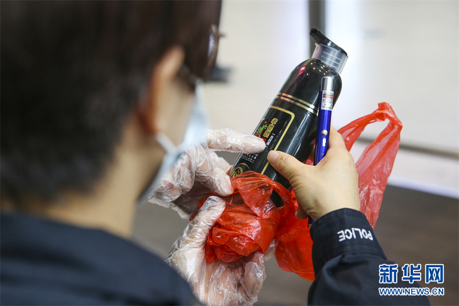 冯琴和队员们通过安检仪查处铁路禁带物品。