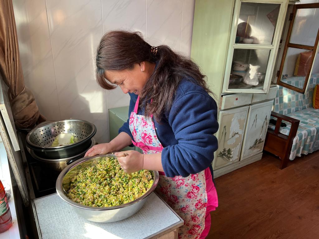 安毓飞的妻子准备包饺子。(新华社记者张磊摄)