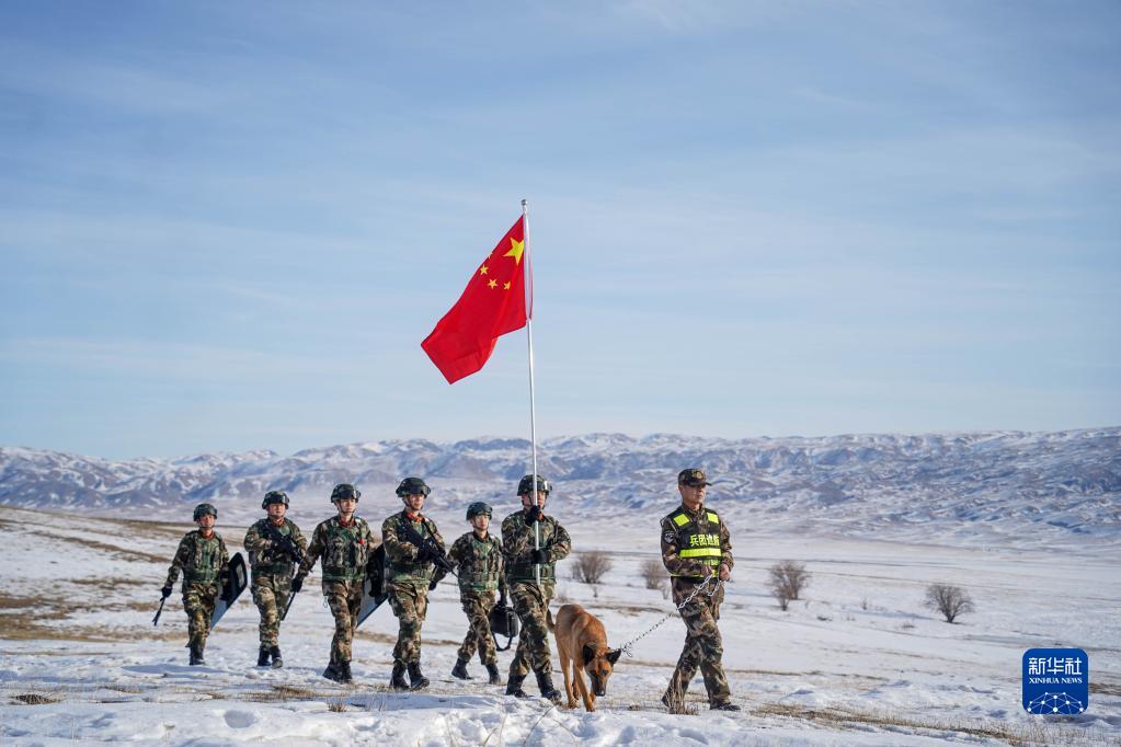 1月31日,武警兵团总队执勤第五支队官兵在中哈边境一带巡逻。新华社发(黄超 摄)