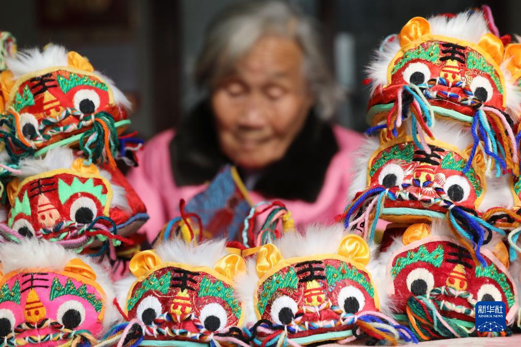 1月20日,河南省焦作市温县番田镇段村的崔金凤老人在制作虎头鞋。新华社发(徐宏星摄)