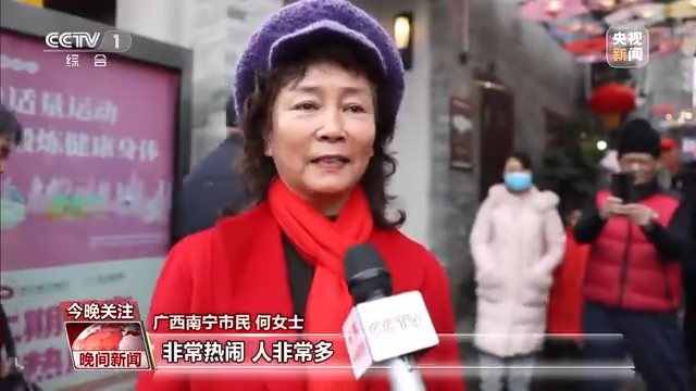广西南宁市民何女士:非常热闹,人非常多,非常有节日气氛。你看这个伞就比较独特,我还没见过,非常漂亮,一看见就想在这儿留个影。三街两巷就是我们南宁的一个缩影。