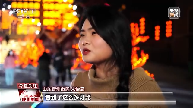 山东青州市民朱怡霏:看到了这么多灯笼,瞬间感觉年味特别足。