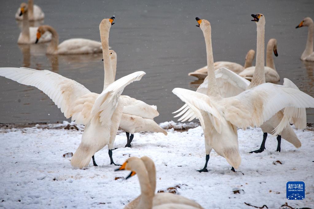 这是2022年1月23日在河南三门峡天鹅湖国家城市湿地公园拍摄的白天鹅。