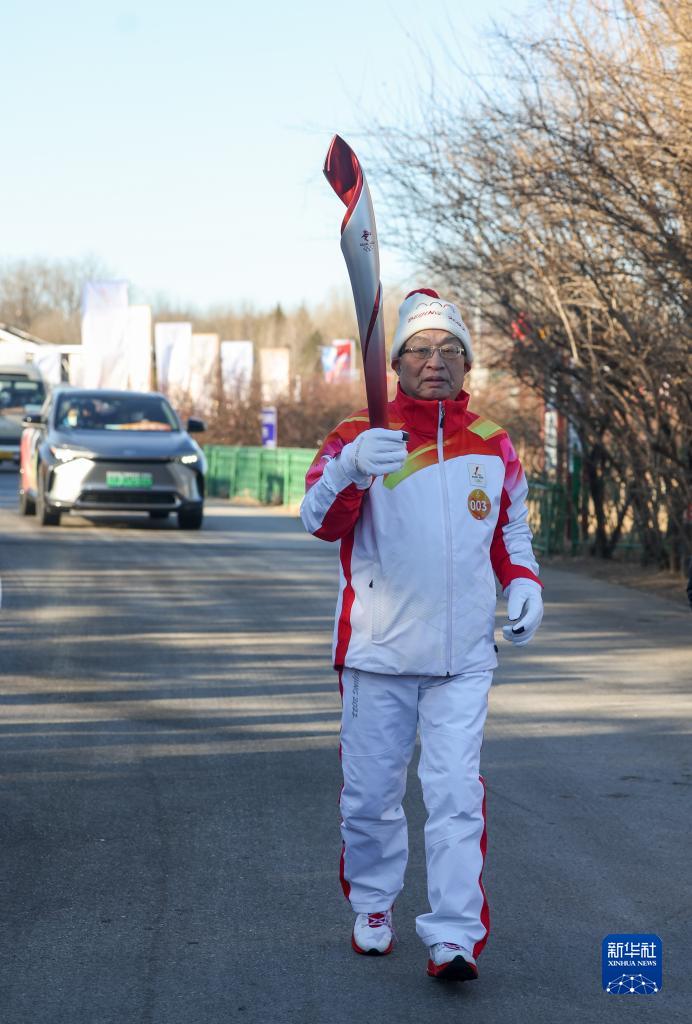 火炬手叶培建在北京2022年冬奥会火炬传递中。新华社记者贾浩成摄