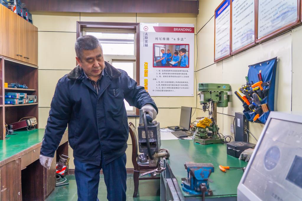 新华社太原2月3日电(记者孙亮全)春节期间,坚守在岗位上的汪小虎还不得清闲。临近退休的他,每天都忙着为往来列车修“尾巴”。