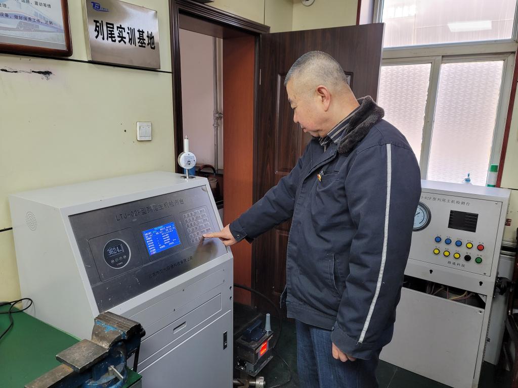 “这是春运期间检测的第72台列尾了。”中国铁路太原局集团有限公司太原北站设备检修车间列尾维修员汪小虎一边说着,一边把列尾上的风管和检测台连在了一起。