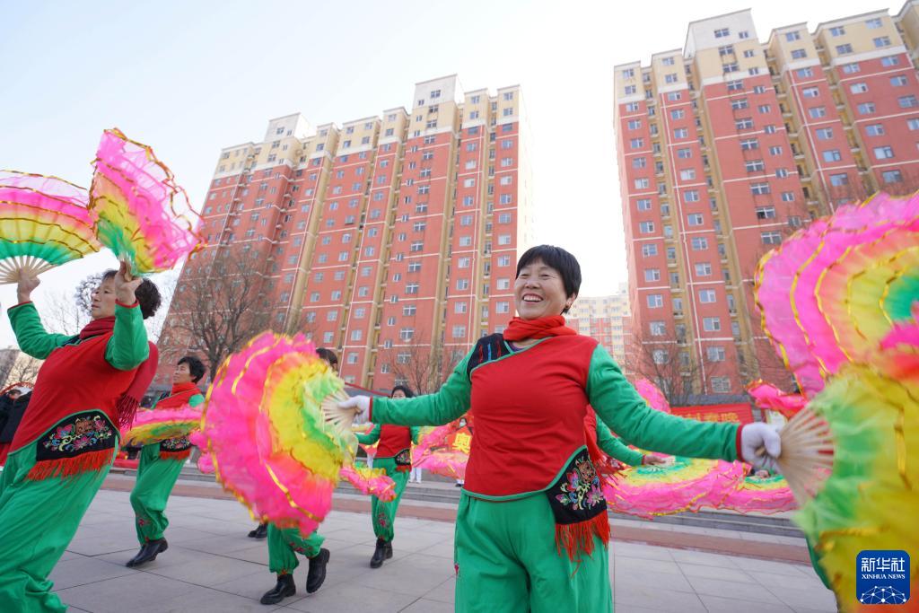 2月3日,人们在河北省邢台市内丘县法治文化广场表演文艺节目。