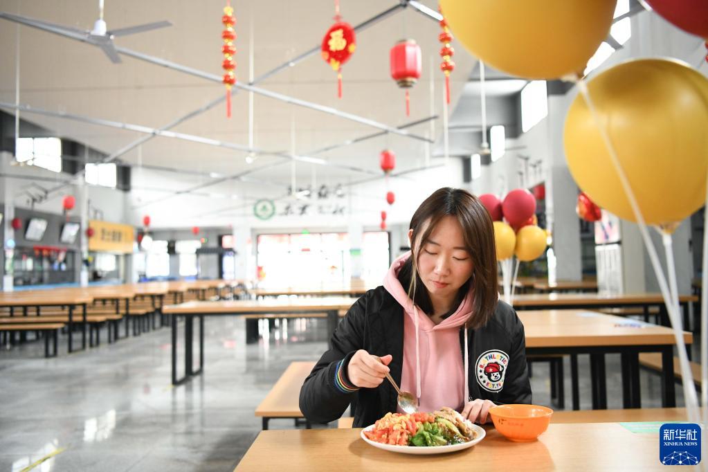 2月3日,梁丹在安徽农业大学食堂里吃午饭。新华社记者 张端 摄