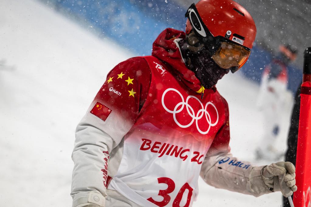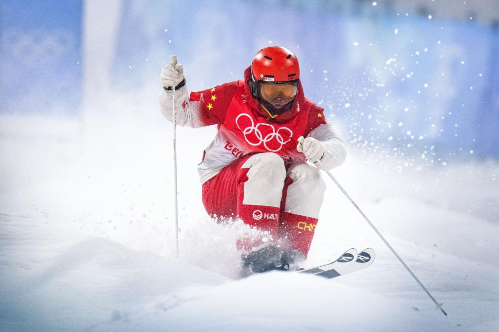 2月3日,北京冬奥会自由式滑雪男子雪上技巧资格赛第1轮比赛在张家口崇礼云顶滑雪公园举行。中国选手赵洋在比赛中。新华社记者肖艺九摄