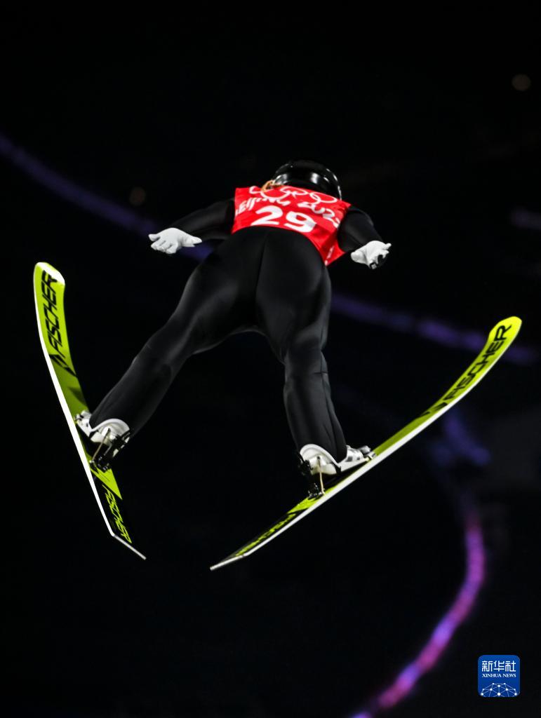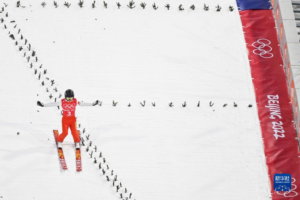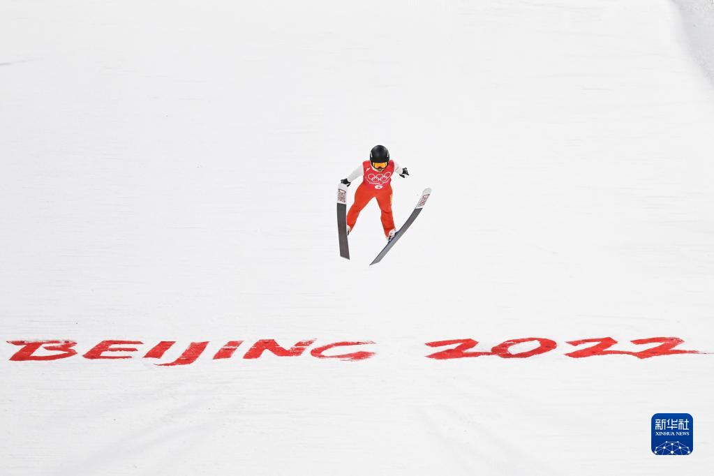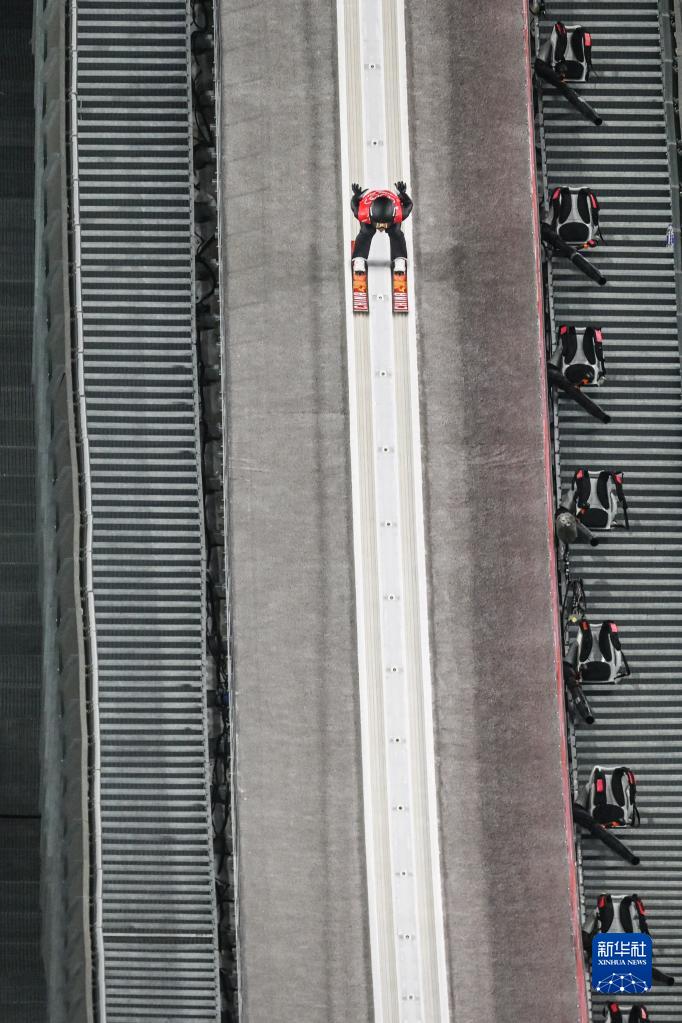 当日,北京冬奥会跳台滑雪女子标准台官方训练在国家跳台滑雪中心举行。