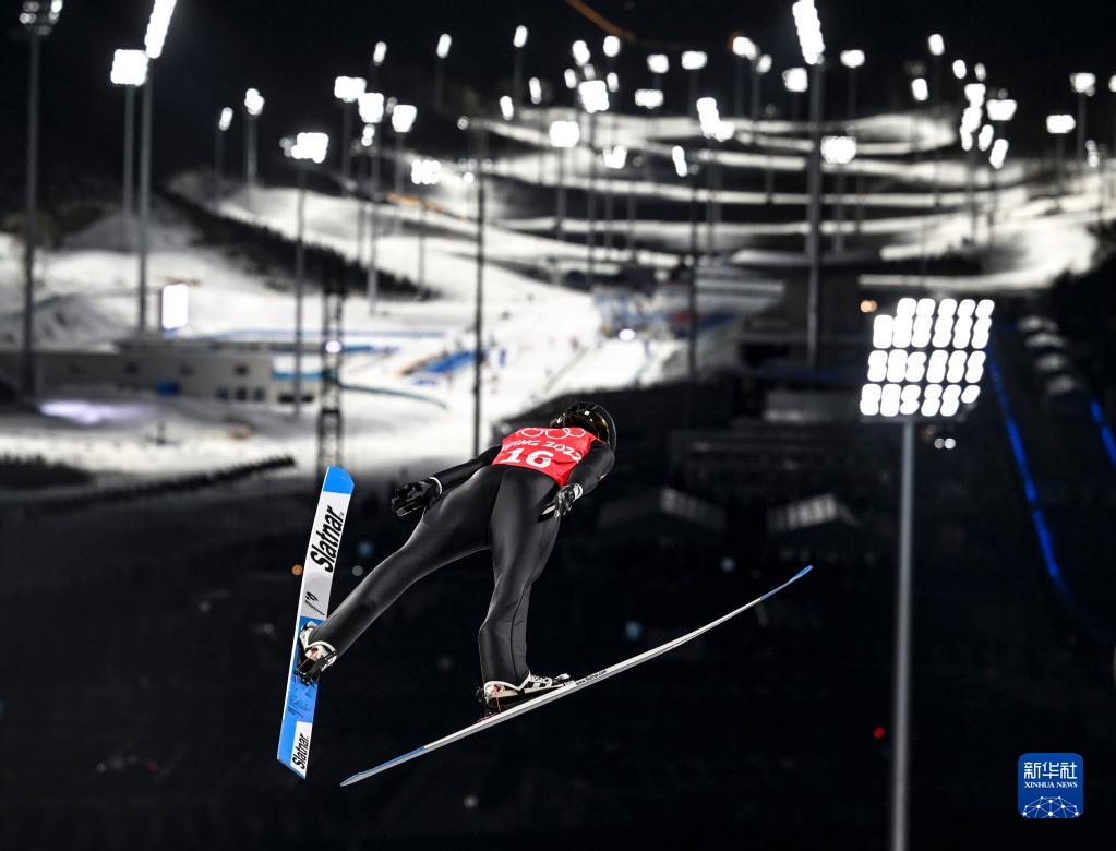 当日,北京冬奥会跳台滑雪女子标准台官方训练在国家跳台滑雪中心举行。